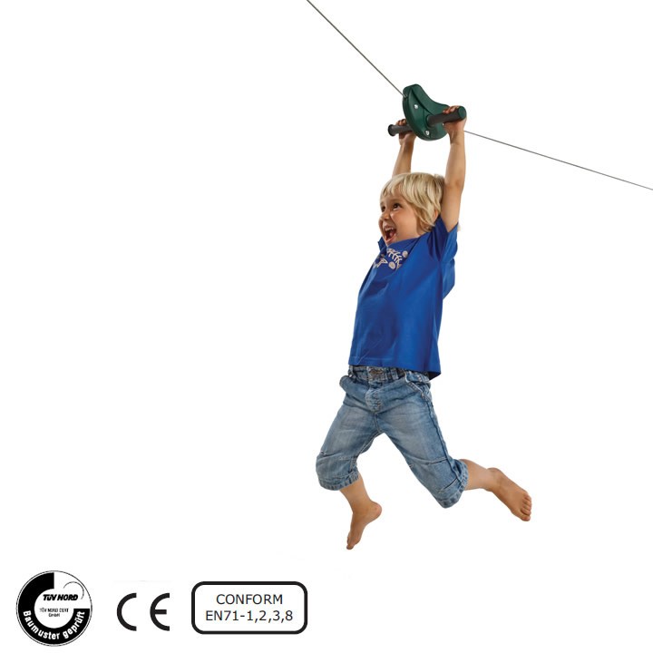 気分爽快!滑車を使って綱渡り。外へ出かけないと体験できなかったジップラインがお庭で楽しめます!別売りのモンキースウィングを合わせれば更にターザン度が上がるのでオススメですよ。