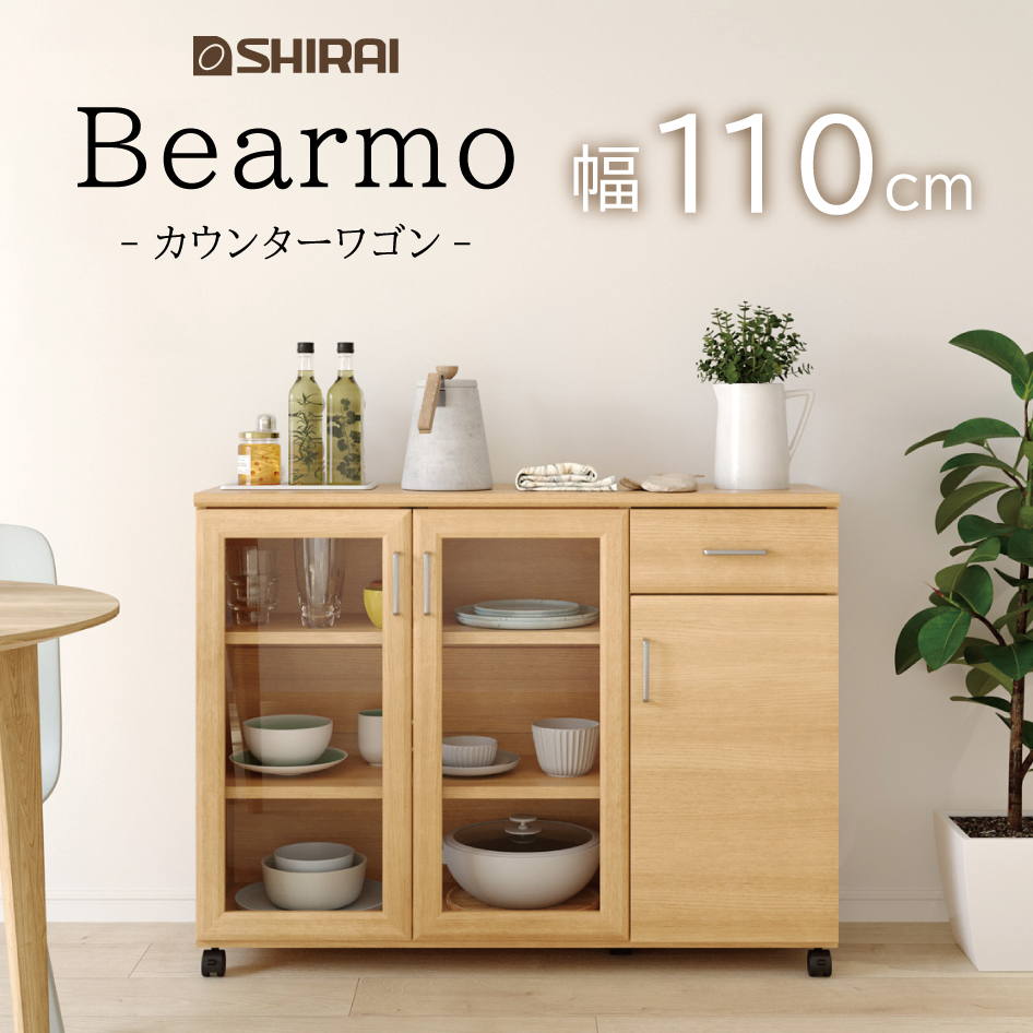 爆買 ベアルモ カウンターワゴン 幅112cm 高さ84cm ストッパー付きキャスター 食器棚 BRM-8511CW 白井産業