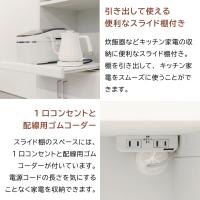 | 耐荷重 | 【移動棚】7kg 【中棚】7kg 【レンジ置き場】15kg 【スライド棚】7kg 【地板】7kg |