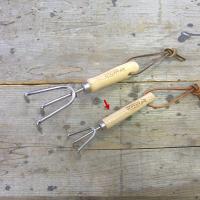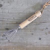 ダルトンのBotanyガーデンツール、ミニレーキ(小熊手)です。根鉢をほぐしたり飾っても可愛いツールです。ヘッドはステンレスでハンドルにタモ材を使った本格的な作りです。ハンドルにBotanyの焼印が入っています。革ひも付きで飾っても楽しめます。