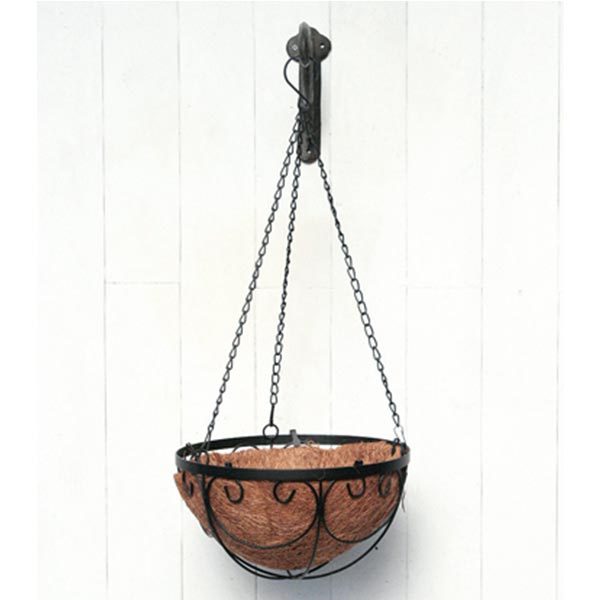 アイアンバスケットとハンギングチェーン(鎖)の吊り鉢。ナチュラルヤシマット付です。