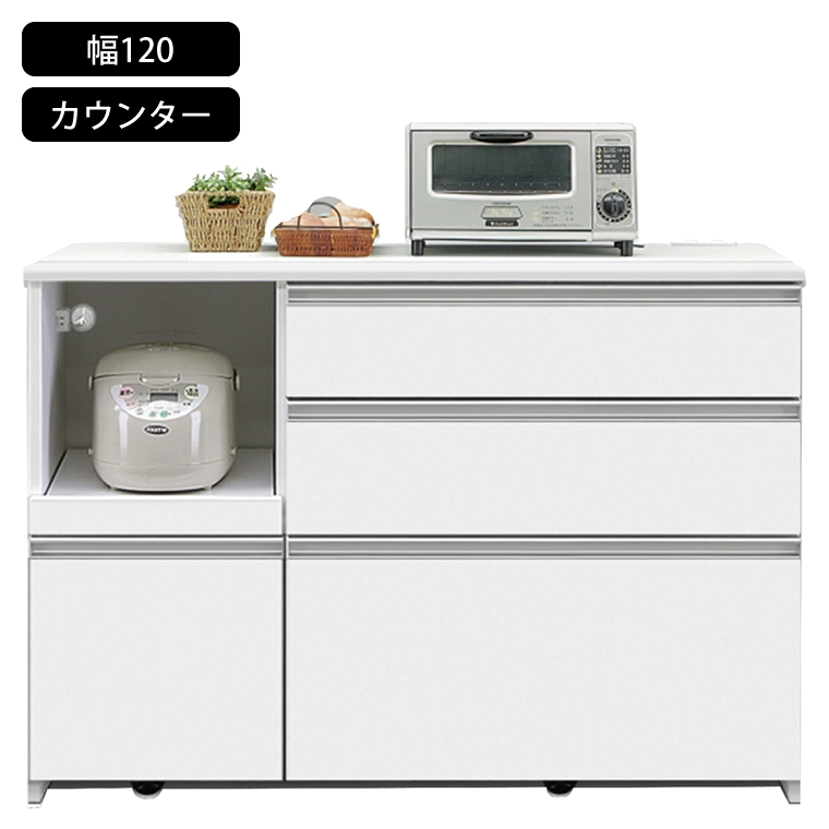 サイズ W1193 D480 H850mm 天 板:エナメル塗装 表面加工:WH/ ハイグロスシート BR・LGY/ 木目調強化紙 側面材:プリント紙化粧合板 その他:全段 3 段引きフルオープンレール、コンセント付き 原産国:ベトナム 用途 120 カウンター |