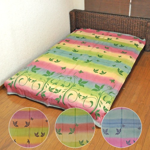 | グラデーションに蝶のシルエットがきれいなクロス☆蝶と植物がプリントされています。 お部屋がやさしい雰囲気に♪ ベッドカバー以外にも使い方次第でいろいろなアレンジができます。 | ![]() |