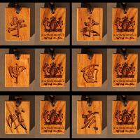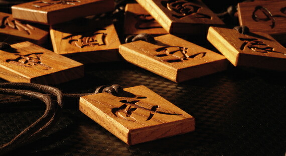 素材は縁起がいいとされているけやきを使用、用途を選べる用吊り下げ用の紐とストラップ用とが付属。