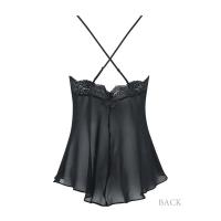 特別な日をゴージャスに演出する華やかなキャミソール。ディテールにこだわった繊細で優雅なデザインが魅力。透け感が上品なレースと軽やかに揺れるシフォンの調和を特徴的に表現しました。シンプルなカラーリングの中で存在感を放つカメオ風チャームがアクセント。胸もとを飾る優美なアップリケはバラの花をイメージしました。大胆にあいたバックスタイルでセクシーなエッセンスをプラス。
