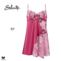 雰囲気の異なる2つの素材を大胆に切り替えた、斬新でゴージャスなロングキャミソール。はっきりとした輪郭で表現された花々が独創的な魅力を際立たせます。芍薬の花をイメージした胸もとのアップリケにクリスタルを添えて特別感を演出。バックスタイルは背中を美しく魅せるセクシーなデザインに仕上げました。