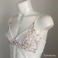 清楚なオフのサテン地にエレガントなレースが映えるメンズブラ♪