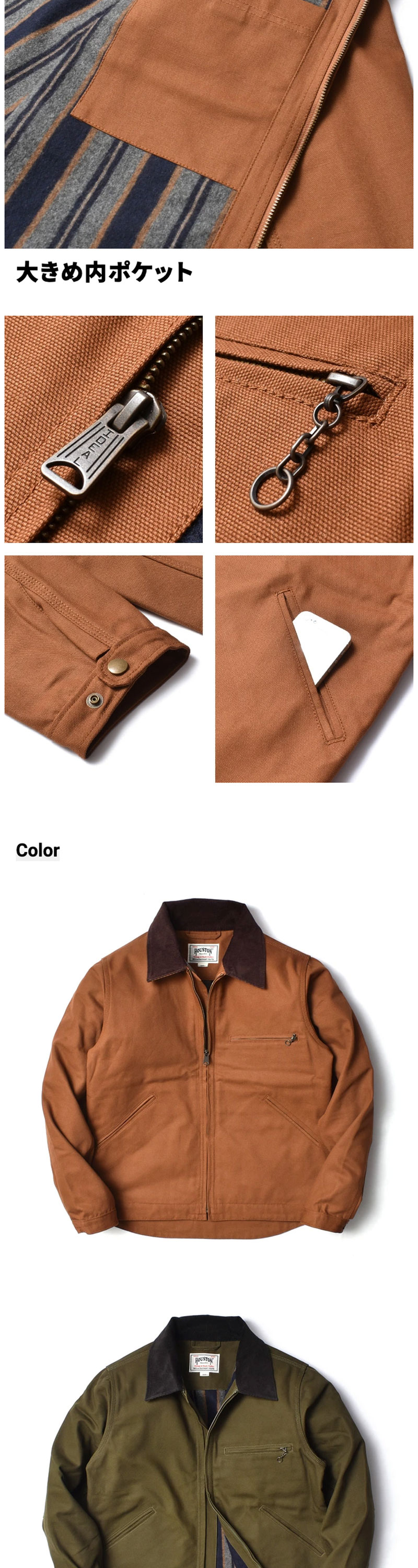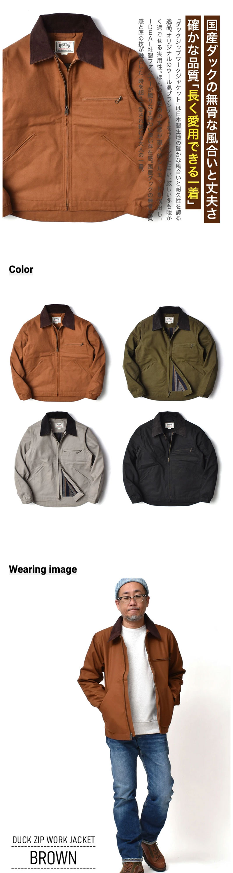 国産ダックの無骨な風合いと丈夫さ、確かな品質「長く愛用できる一着」「ダックジップワークジャケット」は日本製生地の確かな風合いと耐久性を誇る逸品。オリジナルのウール混ブランケットをライニングに用い、厳しい冬も暖かく過ごせる実用性。ほんのり短めの丈感が現代的シルエットを演出し、IDEAL社製ファスナーが織りなす味わい深い存在感。国産ダックの無骨な質感と匠の技が融合した、時を超えて愛され続ける大人の一着。