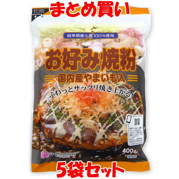 お好み焼粉 桜井食品 国内産やまいも入り 400g×5袋セット まとめ買い
