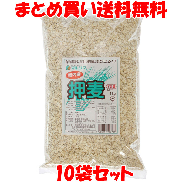 大麦 マルシマ 押麦 1kg×10個セット まとめ買い送料無料