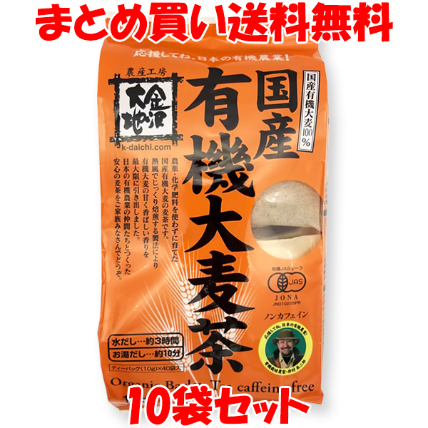 金沢大地 国産有機大麦茶 麦茶 400g(10g×40パック) ×10袋セット まとめ買い送料無料