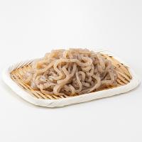○缶蒸し製法で造っており、カットして糸状にしていますので、断面は丸ではなく四角になっています。 また、通常の糸こんにゃくよりも短くなっています。