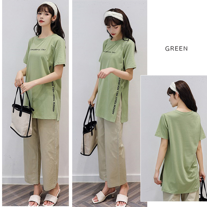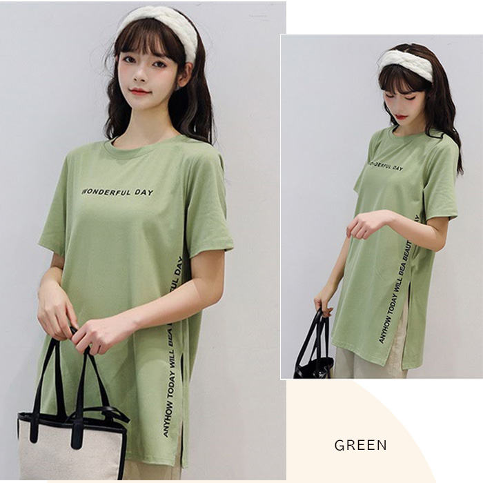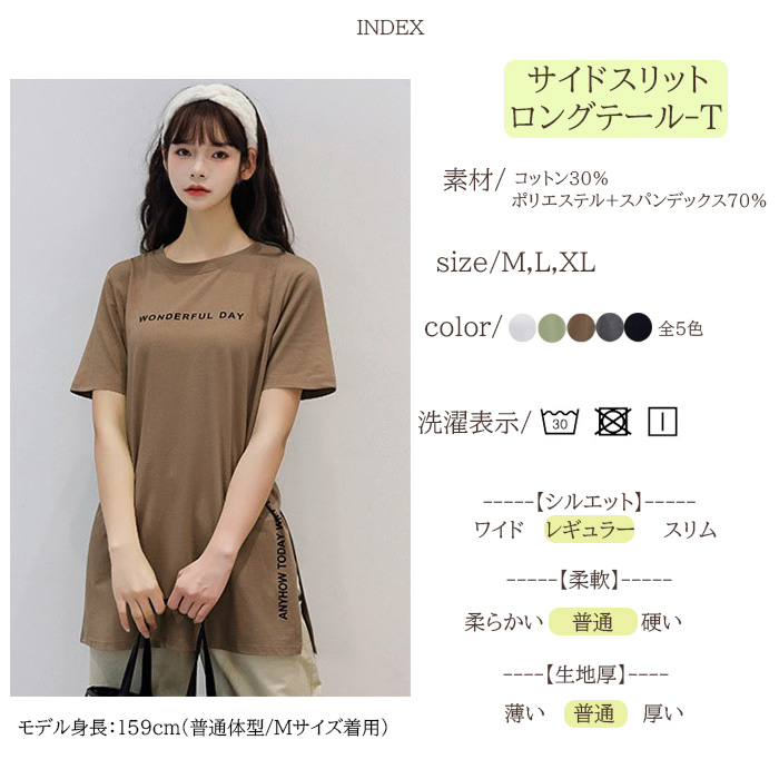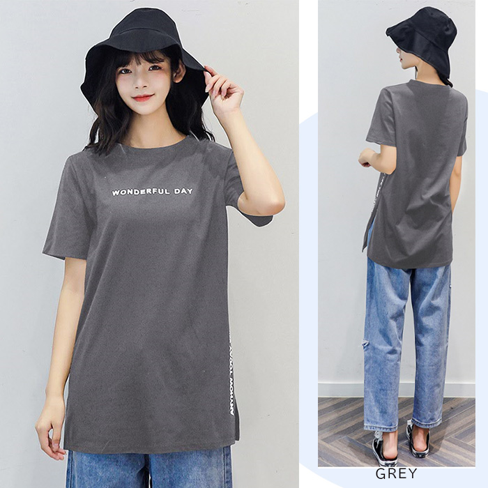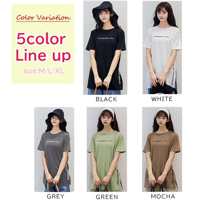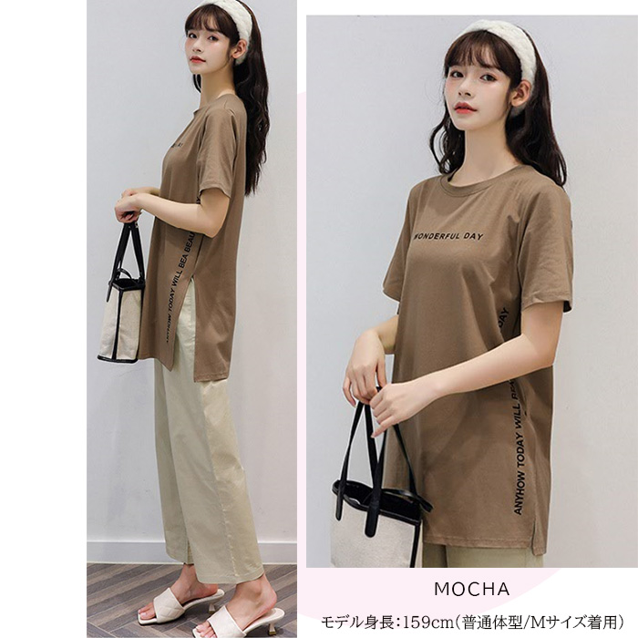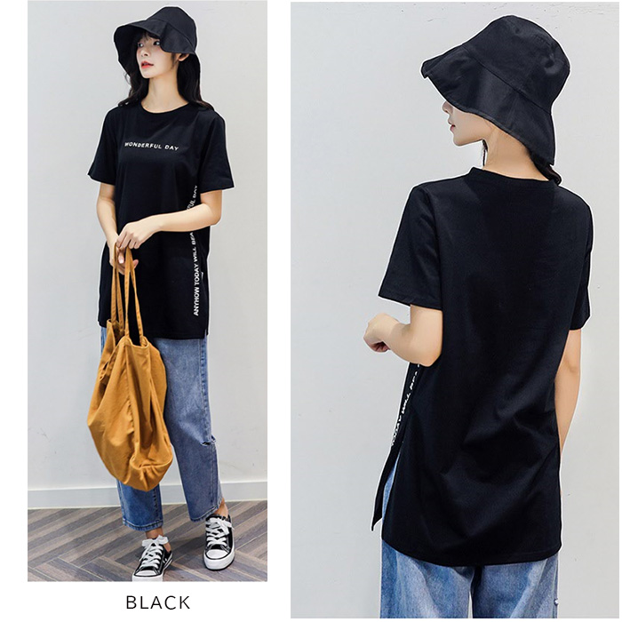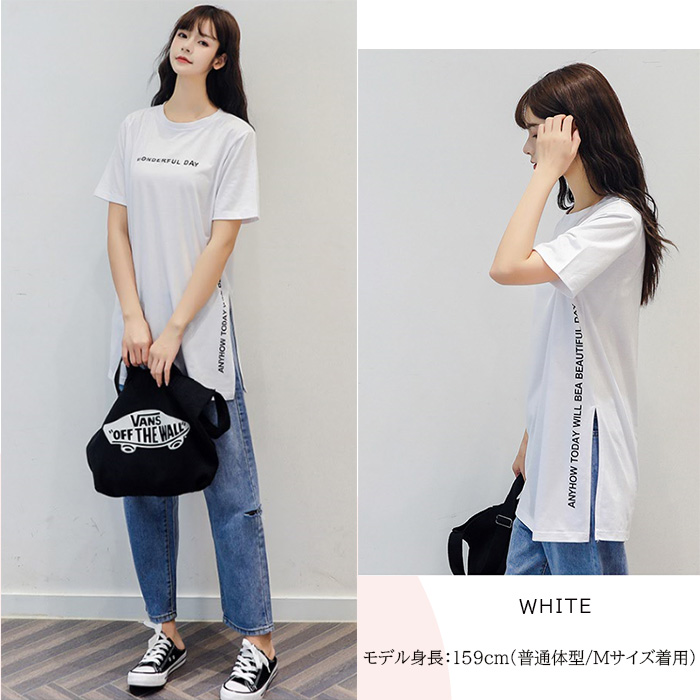 半袖 Tシャツ レディース トップス かわいい 夏 春 チュニック ロング きれいめ サイドスリット ロゴ 20代 30代 40代 50代