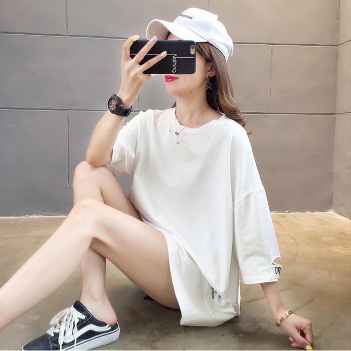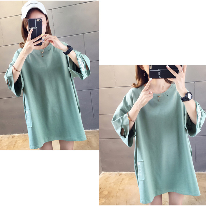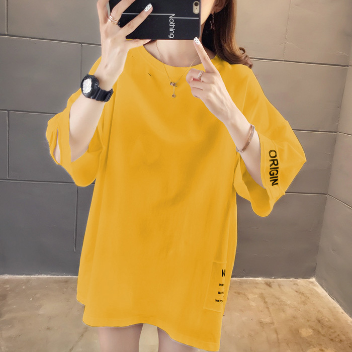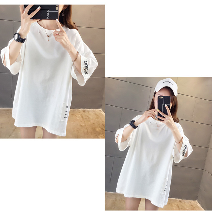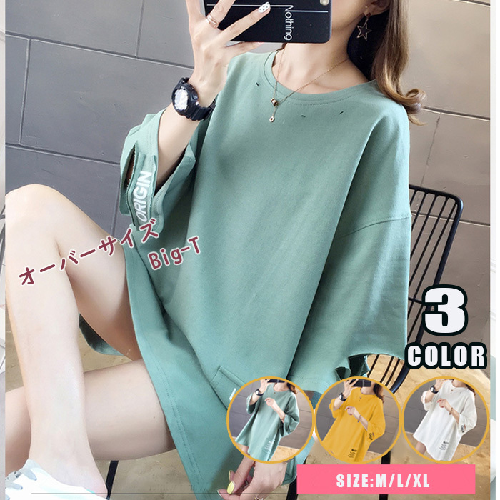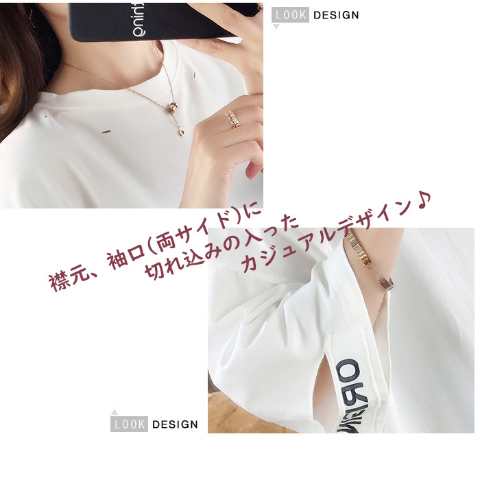 Tシャツ レディース 半袖 トップス サイドスリット 夏 春 ゆったり オーバーサイズ カットソー プリント ロゴ 切れ込み 在庫処分
