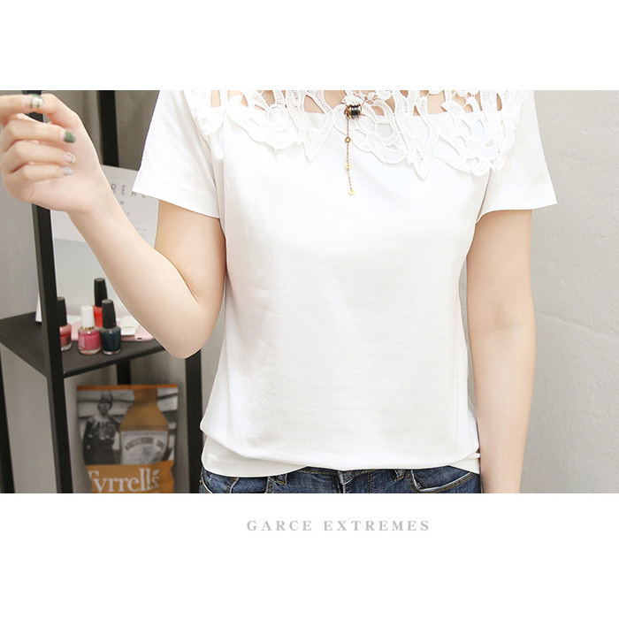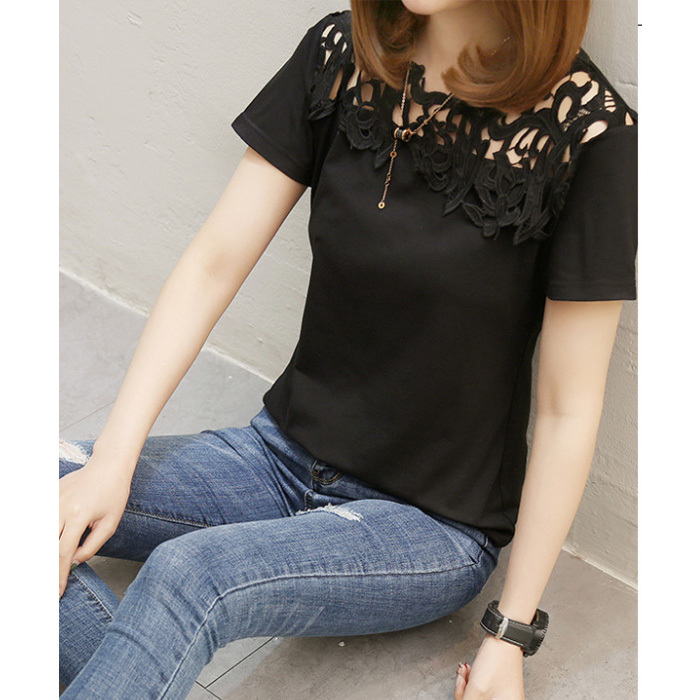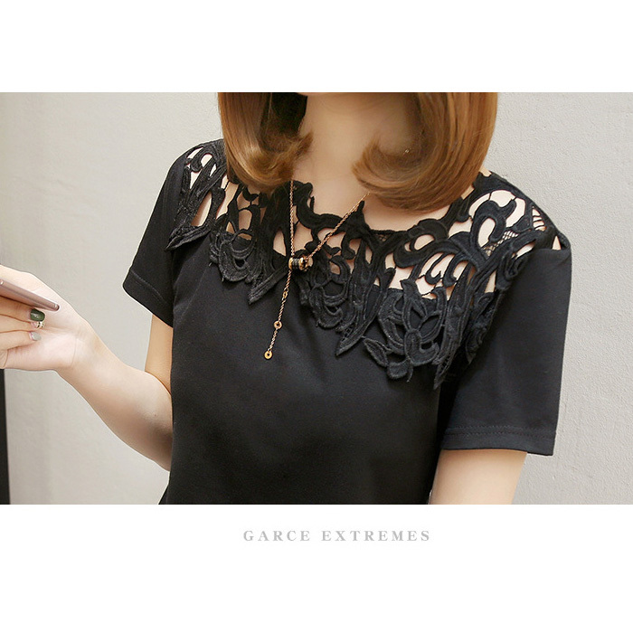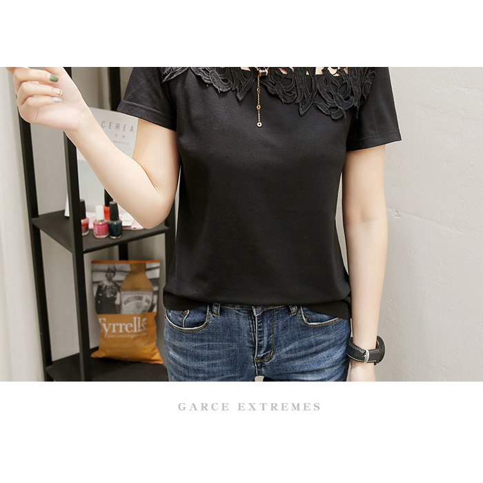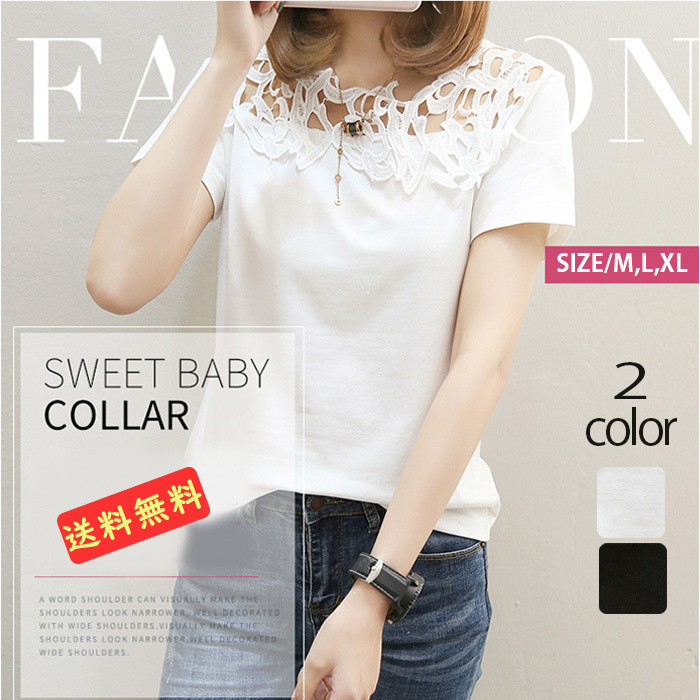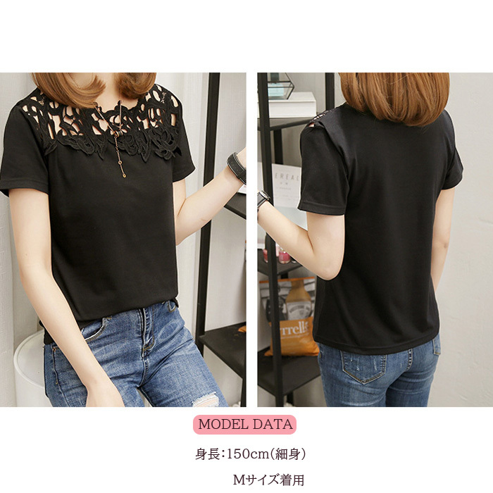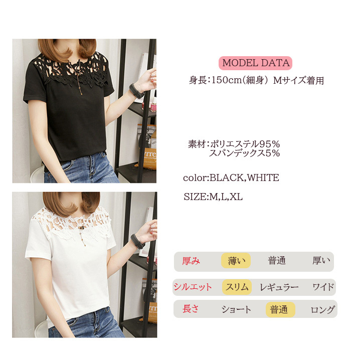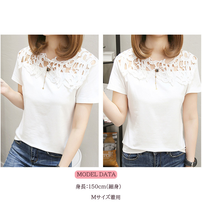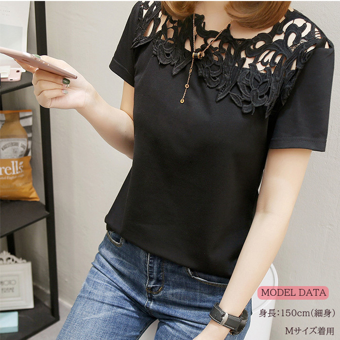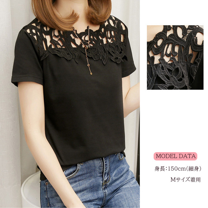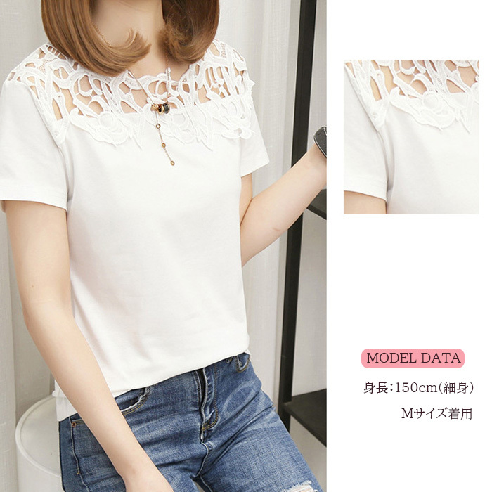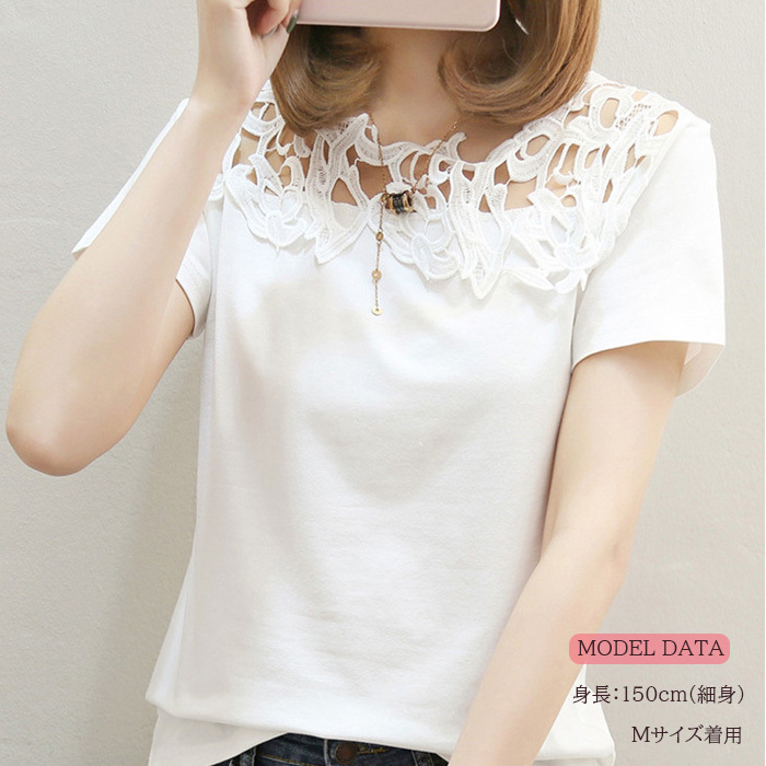 Tシャツ レディース 半袖 トップス レース 夏 花 フラワー カジュアル かわいい タイト 在庫処分
