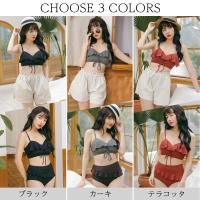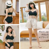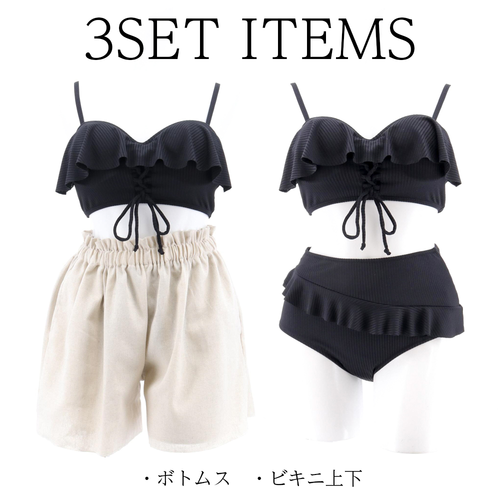 ビキニ 水着 レディース 体型カバー 3点セット ショートパンツ 麻 コットン 綿 ビキニ 大きいサイズ ママ水着 大人 オトナ女子 おしゃれ パッド付き