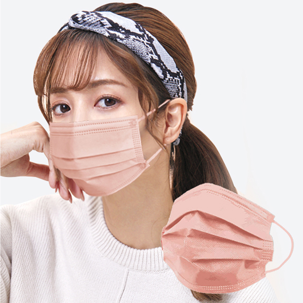 1.マスクのとがっている方を下にして広げ、顔に当てる。