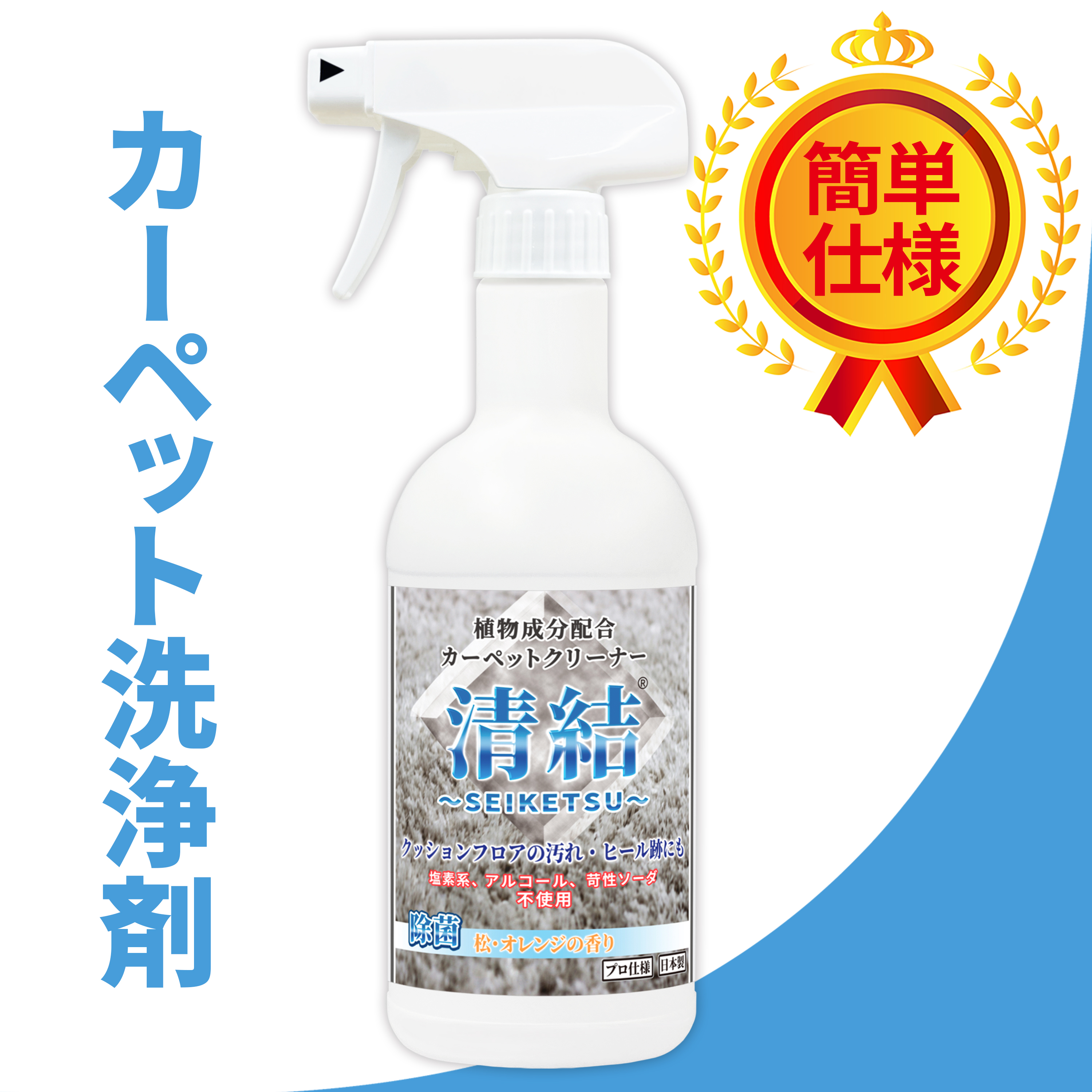 カーペットクリーナー 清結 500g 強力な非塩素系のカーペット洗浄剤/タイルカーペット 絨毯 ソファ クッションフロアのべた付き 黒ずみを除菌 掃除/SEIKETSU500