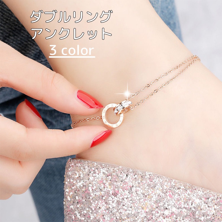 ダブルリング アンクレット ブレスレット サージカルステンレス ゴールド シルバー レディース