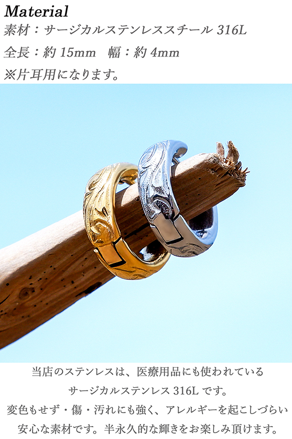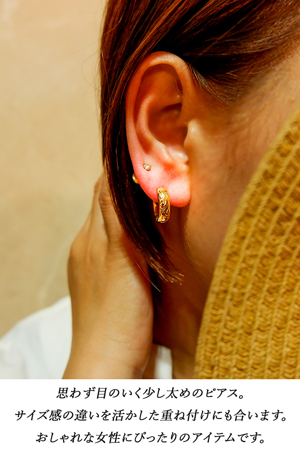 ハワイアンジュエリー ピアス 太め 片耳 両耳 レディース メンズ サージカルステンレス 金属アレルギー対応 つけっぱなし シルバー ゴールド ピンクゴールド