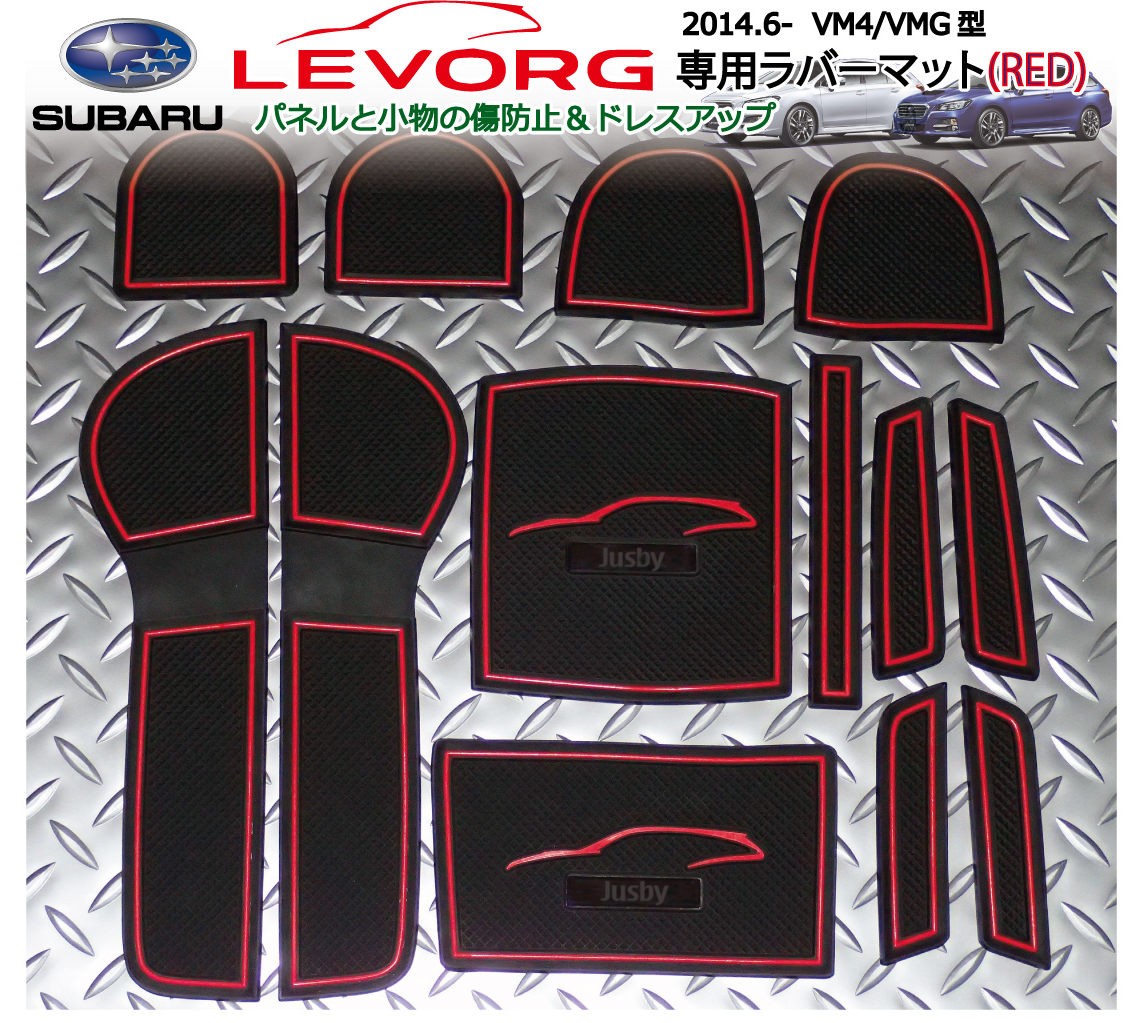 レヴォーグ VM4/VMG型 (赤色)インテリアラバーマット ゴムマットVer3 A~F型対応ドアポケットマット LEVORG パーツ/アクセサリー スバル