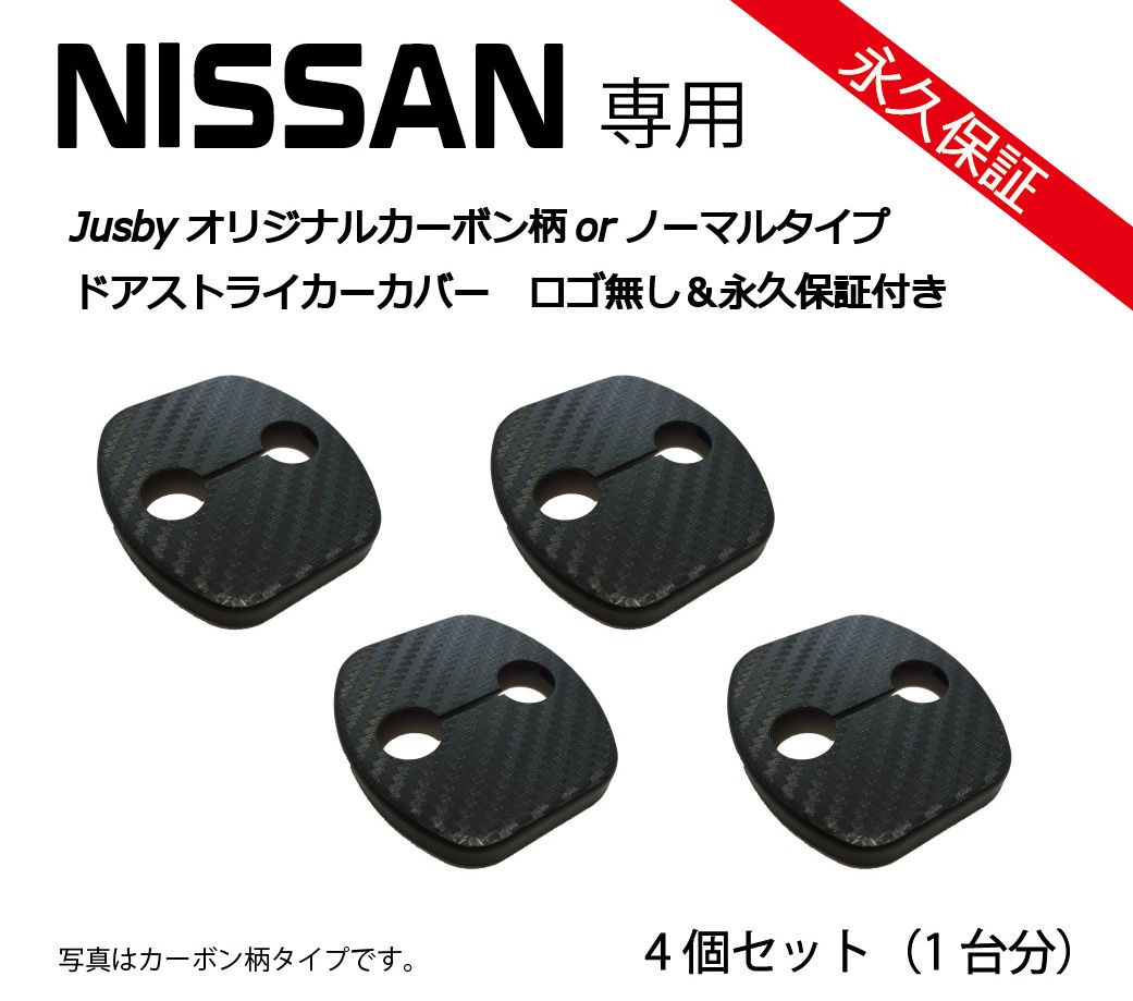 (永久保証&ロゴ無)日産専用ドアストライカー 1台分(4個) カーボン柄 orノーマル ノート マーチ リーフ キックス等に ドレスアップパーツアクセサリー