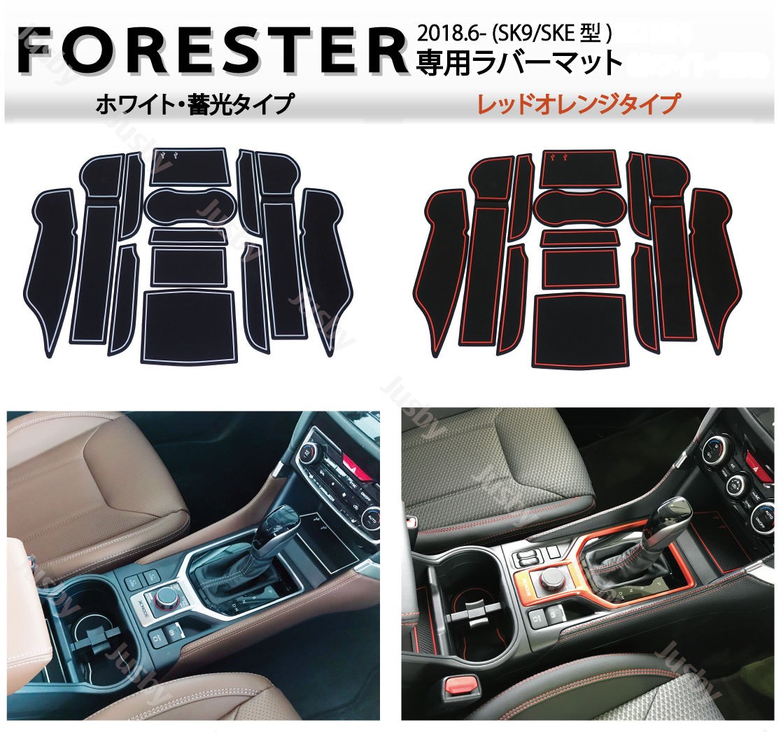 フォレスター(SK系)専用 インテリアラバーマット (レッドオレンジorホワイト)FORESTER ドアポケットマット フロア 内装パーツ ドレスアップ アクササリー