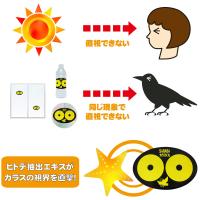 ・ステッカーの製品は2枚入りと6枚入りの2種類あります。(こちらの商品は2枚入り)カラスの嗅覚はほとんどありません。従って、カラス追放のポイントは「視覚」になります。