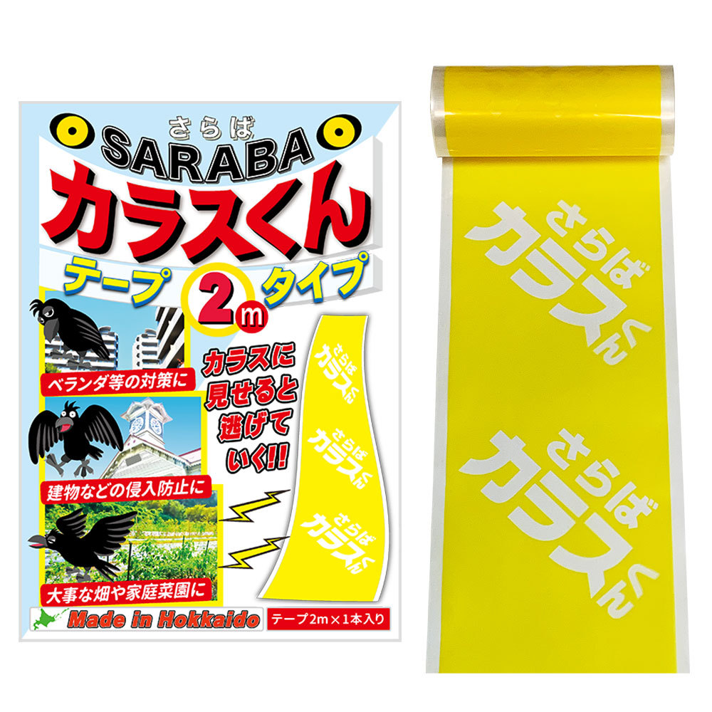 カラスよけ 対策 撃退 グッズ SARABAカラスくん テープ2m シングルタイプ 正規販売店オリジナル品 建物 家庭菜園 ベランダ ゴミ ボックス に