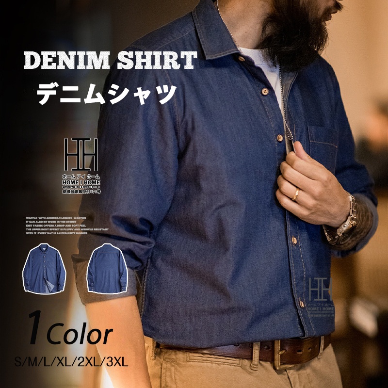 デニムシャツ シャンブレーシャツ シャツ メンズ 長袖 綿 100 ポケット ヴィンテージ スリムフィット ワークシャツ デニムシャツ カジュアル トップス 重ね着 インナー 春 秋 冬 メンズファッション