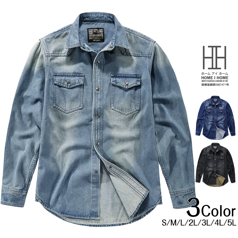 ウエスタンシャツ デニムシャツ メンズ 長袖 アメカジ おしゃれ 両ポケット ワークシャツ ユーズド加工 メンズシャツ シャツジャケット トップス