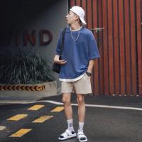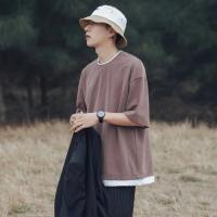 tシャツ メンズ 五分袖 カットソー 無地 差し色 風 レイヤードデザイン おしゃれ キレイめ ゆったり ストリート ビタ系 トップス