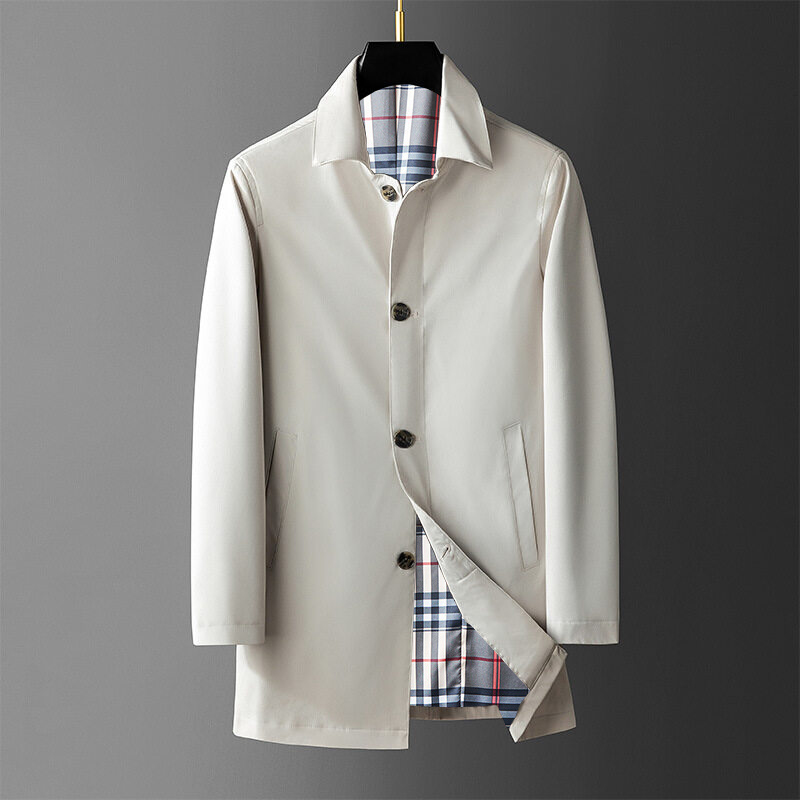 ステンカラーコート ビジネスコート メンズ ミディアム丈 無地 ビジネス 防風 シンプル カジュアル スプリングコート 秋服 春 冬服