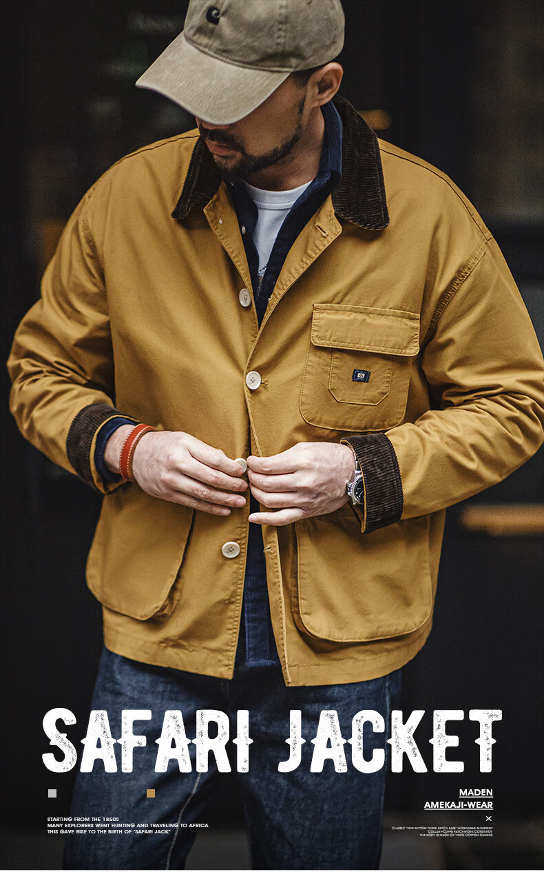多機能性に優れていて、ディテールと質感に注目しているサファリジャケット。