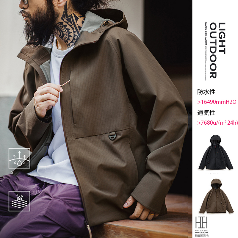マウンテンパーカー メンズ ウインドブレーカー マウンテンジャケット レインウェア 撥水 防水 防風 フード 防寒 3層構造 ポケット 止水ファスナー アウトドア