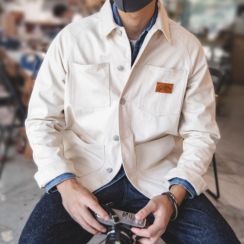 デニムジャケット 白デニム 男性 メンズ ジャケット Gジャン ゆったり ワーク 大容量ポケット ストリート アメカジ マルチポケット