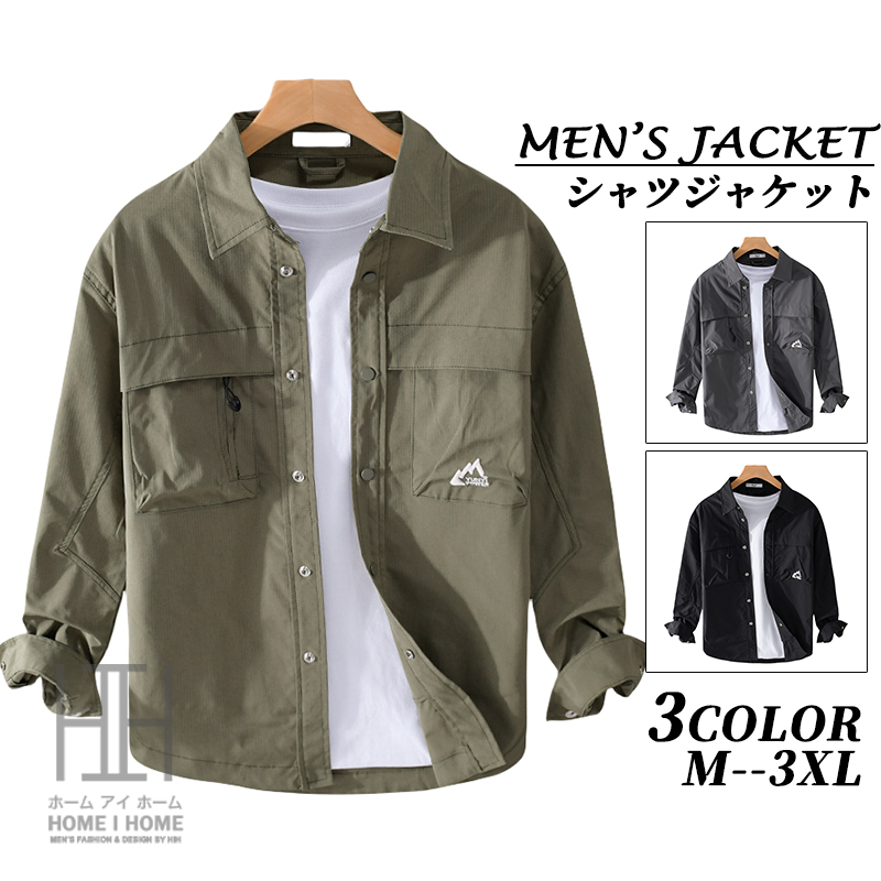 シャツジャケット ミリタリージャケット メンズ おしゃれ ウインドブレーカー スナップボタン アウトドア スポーツ ワンポイント アウター ジャケット ブルゾン