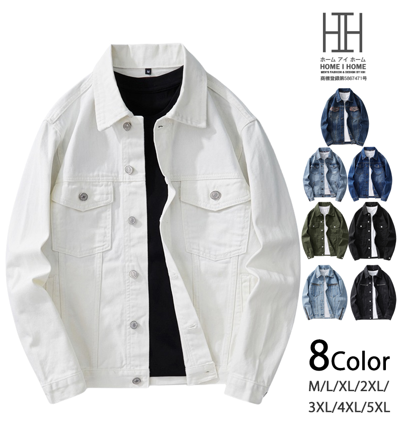 デニムジャケット メンズ ホワイト 白 大きいサイズ ジージャン gジャン カバーオール トラッカージャケット デニム ジャケット メンズgジャン デニムコート