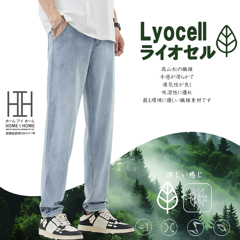 夏向けのライオセル素材を使用し、暑い夏でもストレスフリーな履き心地が再現されたきれいめデニムパンツ。