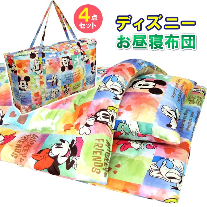 ディズニーパッチワーク調お昼寝布団 4点セット 子供 お昼寝 布団 セット 敷布団 掛布団 枕 収納バッグ ディズニー ピーチスキン 送料無料(メーカー直送)