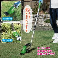 セット内容 | 本体・伸縮スティック・芝生用ブレード(バリカン刃)・庭木用ブレード(トリマー刃)・ACアダプター |