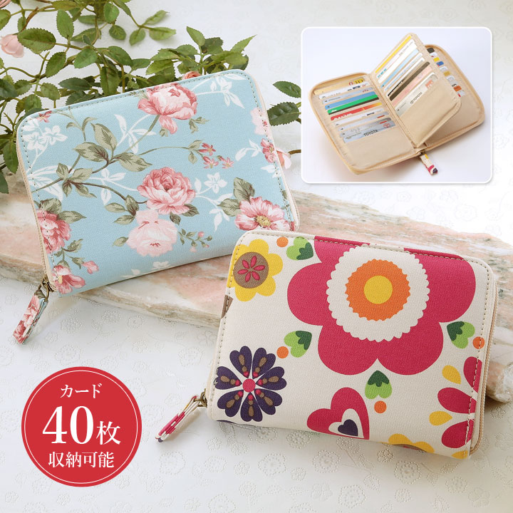 カードホルダー レディース 花柄 ローズ ポイントカード 診察券 クレジットカード 会員証 キャッシュカード 収納 保管 40枚収納カードケース(メール便可)