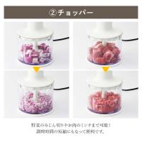 仕様 | 電源:AC100V 50/60Hz 定格消費電力:(ブレンダー・チョッパー)200W、(泡立て器)33W 保証:1年 |