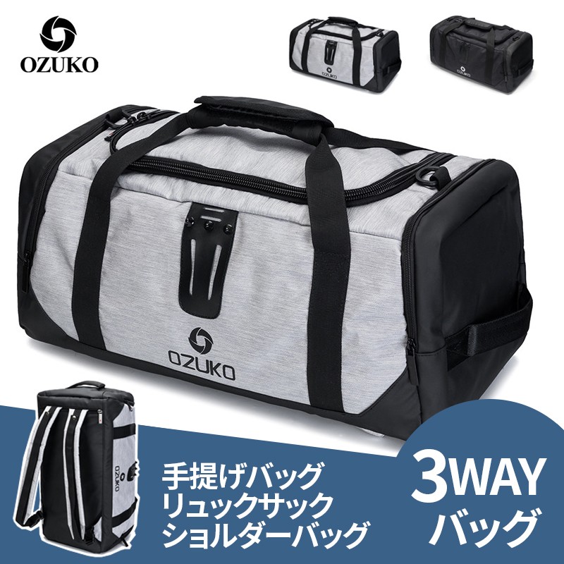 OZUKO ドラムバッグ 手提げバッグ リュックサック 斜めがけ 3way ノートPC タブレット収納 カバン 男女兼用 大容量 靴収納 防水 多目的旅行 スポーツジーム通い