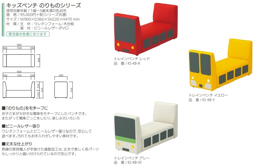 オモイオキッズベンチ のりものシリーズ KS-KB-** 病院、乳幼児保育施設、商業施設保育所のキッズスペース等