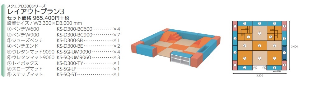 オモイオスクエアD300シリーズ レイアウトプラン3(W3300XD3000mm) ご予算、設置スペースに応じて特注サイズ、レイアウトの作成可能です。