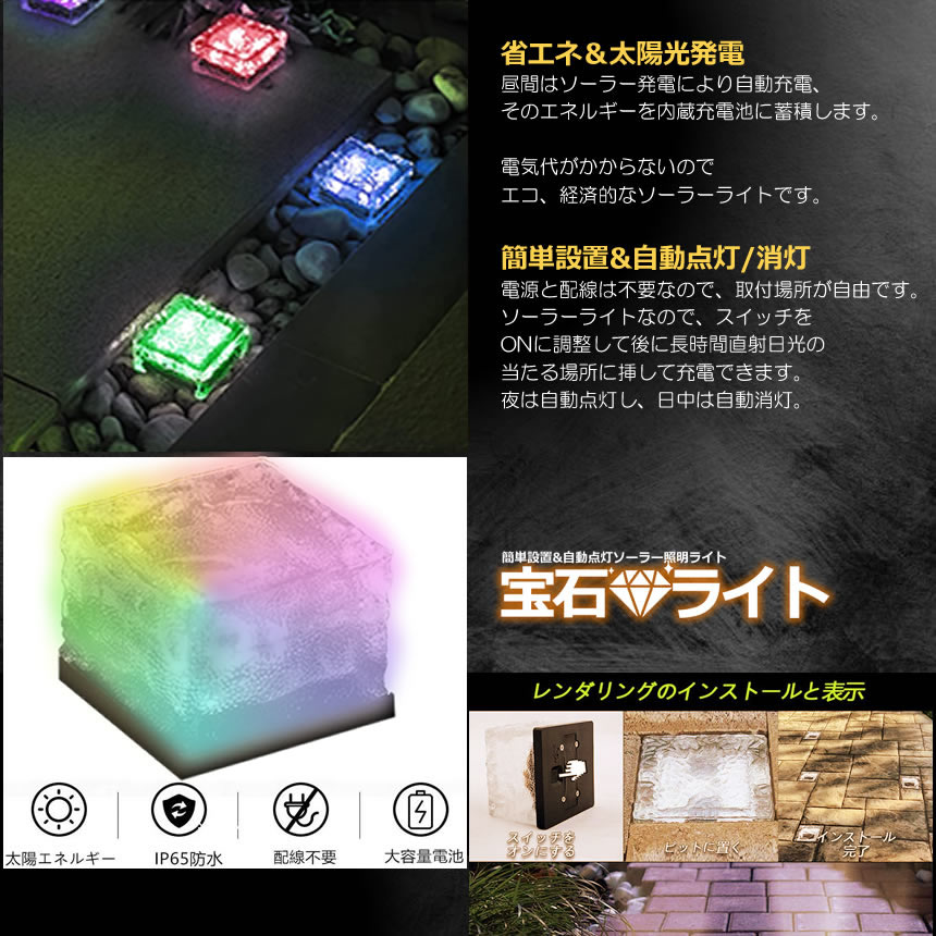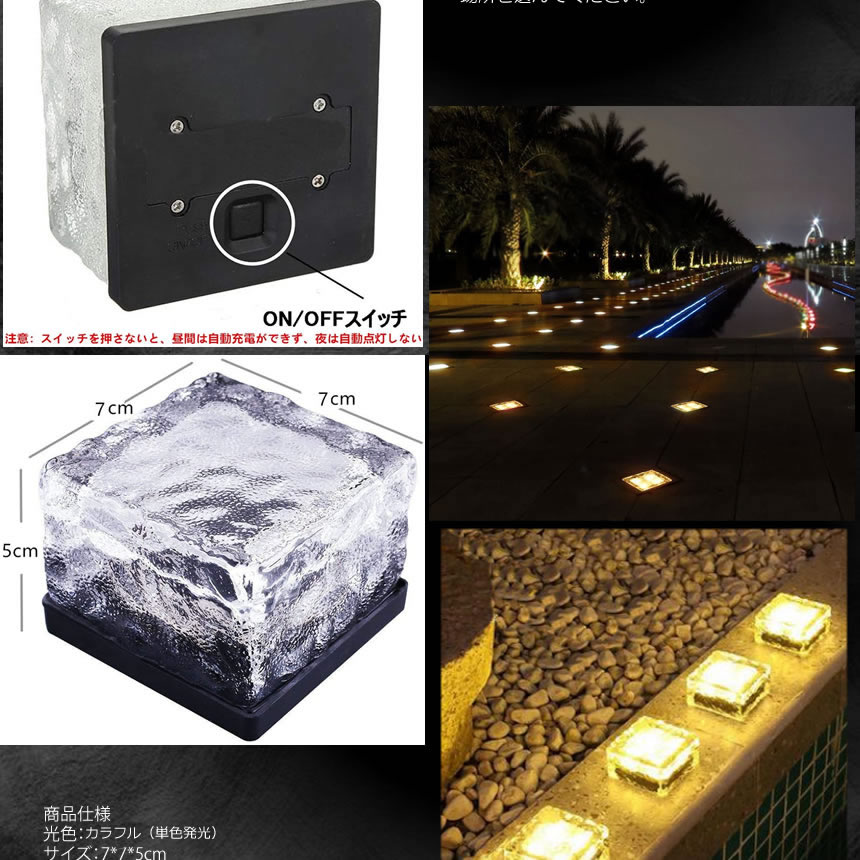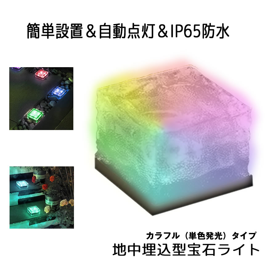 地中埋込型ライト LED ソーラーライト 太陽光パネル 充電 防水 光センサー ガーデンライト 防犯ライト ソーラー ガーデン カラフルタイプ HOSOWARA-CA