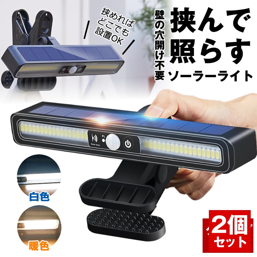 【2個セット】 ソーラーライト センサーライト 屋外 防水 明るい 人感 ガーデンライト クリップライト 人感センサーライト クリップ ソーラーセンサーライト