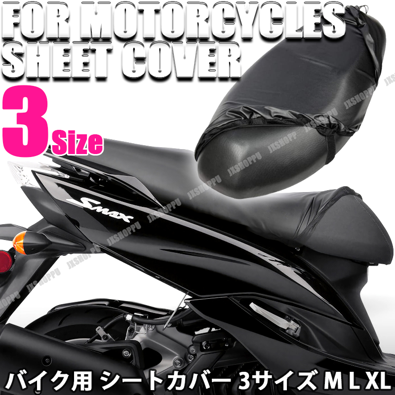 バイク用 シートカバー ブラック スクーター オートバイ 防水 雨 日差し シート 保護 簡単取付 汎用 収納袋付き