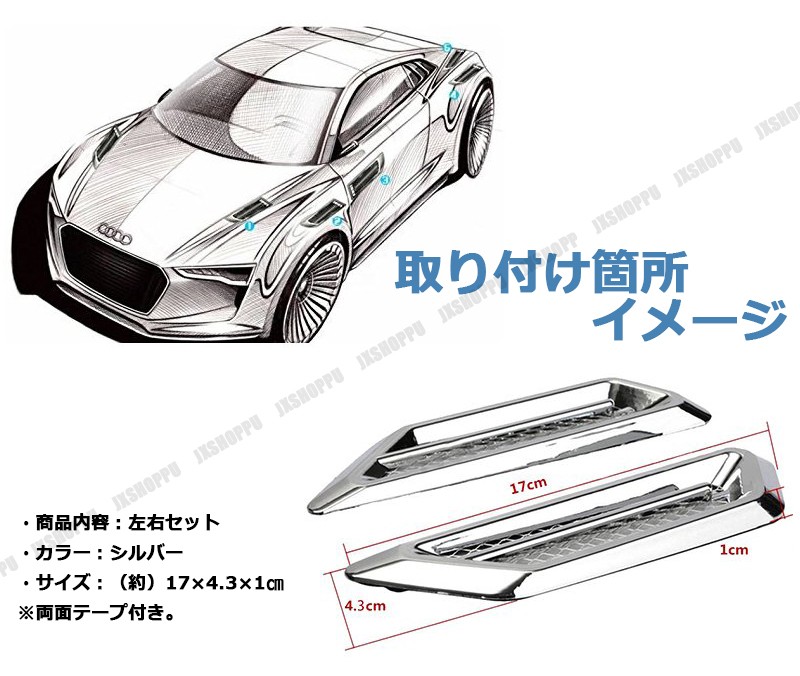 ダミーダクト シルバー 銀 メッキ フェンダー 左右セット 外装 カスタムパーツ ドレスアップ カー用品 車 汎用 簡単取付